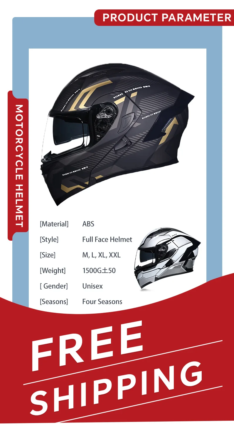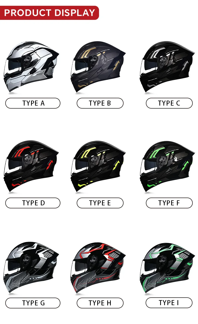 Full Face Motorcycle Helmet: The Helmet with lightweight impact-resistant ABS engineering plastic shell, and a high-density channel airflow EPS cushioning design with a buffer liner for maximum impact absorption.